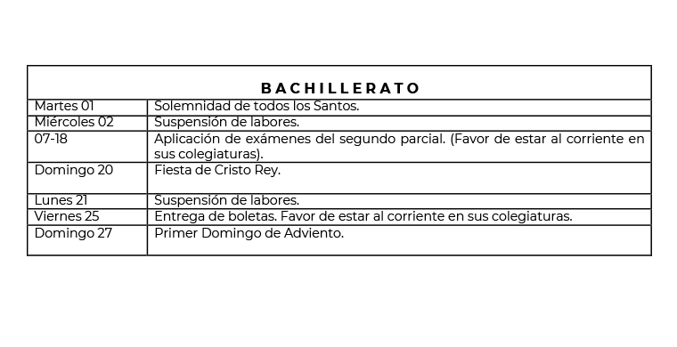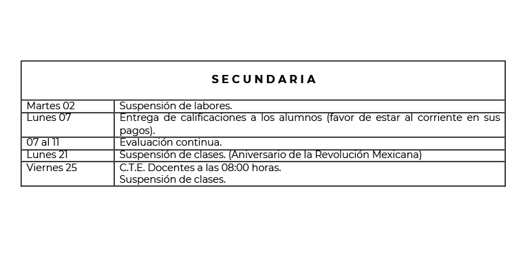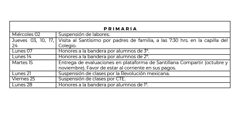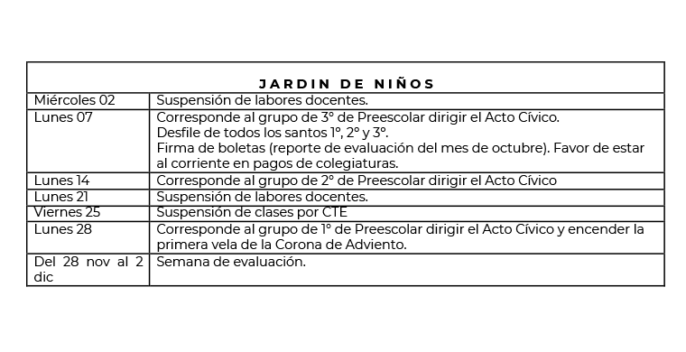 A continuación les damos a conocer las actividades a realizar durante el mes de NOVIEMBRE
